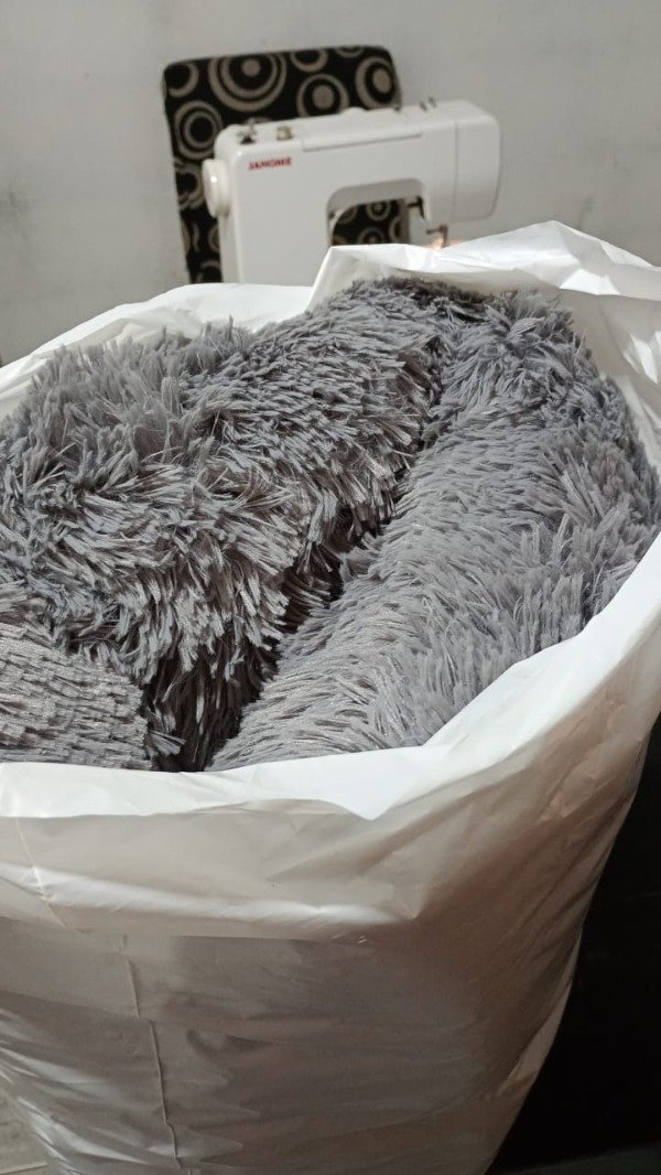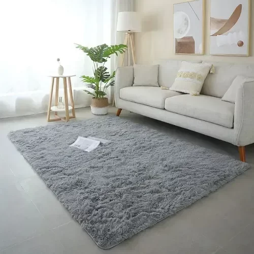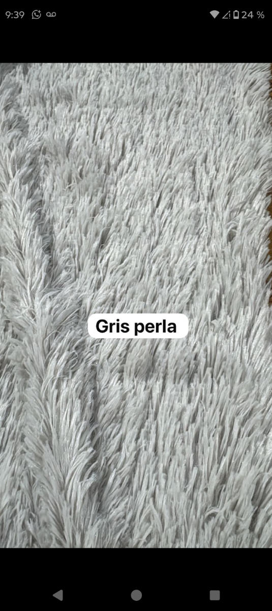 Alfombra de pelo largo (4cm) color gris con Antideslizante y relleno de 150gr de guata que la hace suavemente acolchonada. Lavable en lavarropas con costuras reforzadas.